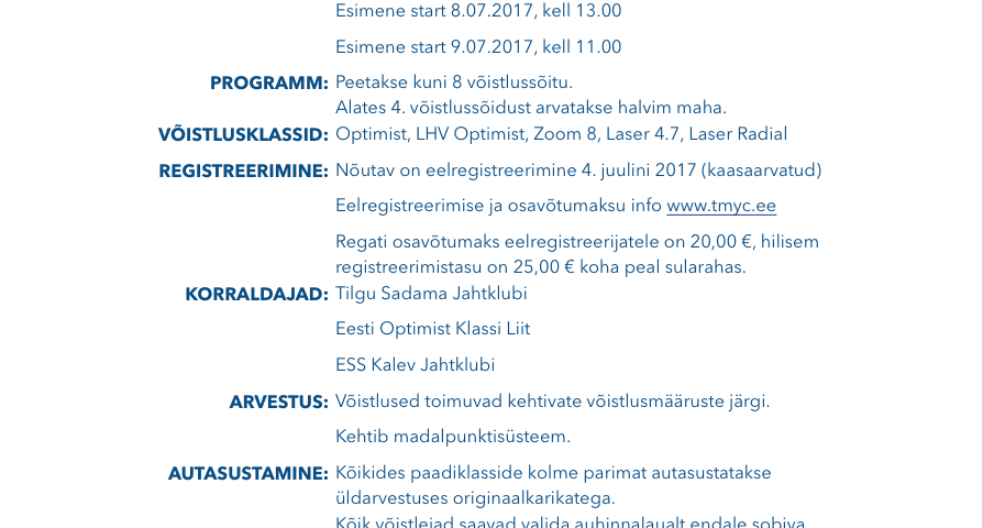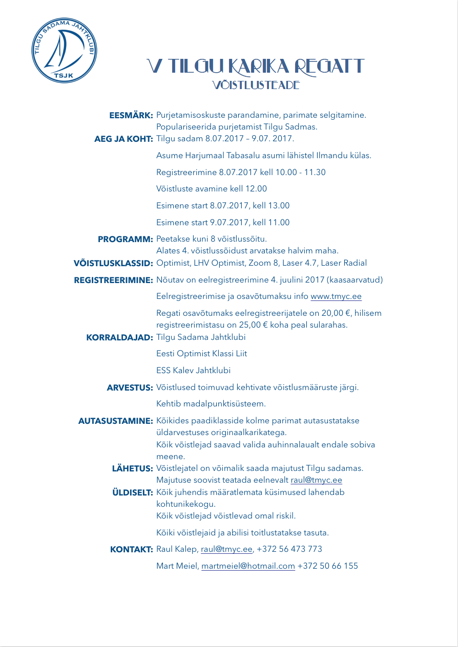14. juuni 2017UncategorizedMarius Mericyll Hea võistleja, siit leiad V Tilgu Karika Regati võistlusteate
